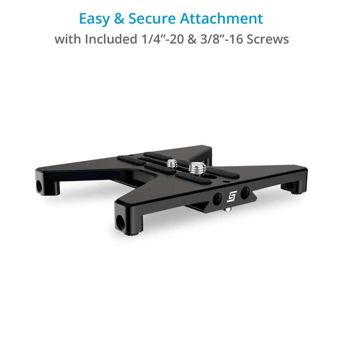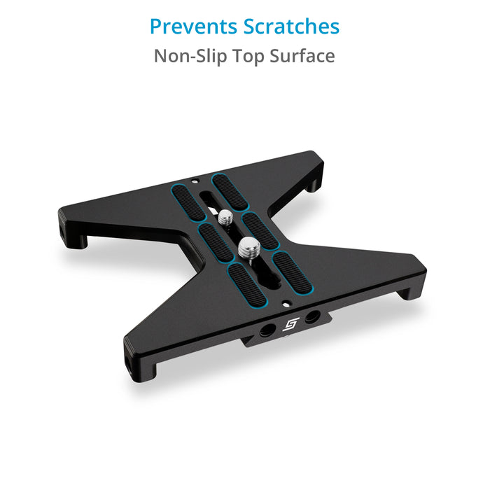 Place your camera more securely on any flat surface with the Proaim SnapRig medium base plate support, which keeps your camera from falling or toppling over.
