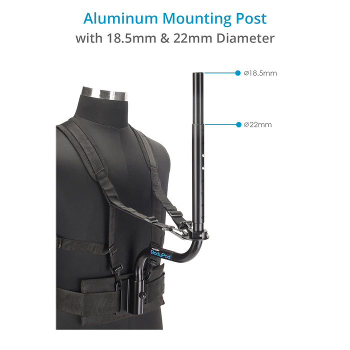 It features 18.5 / 22mm diameter aluminum mounting post to support select FLYCAM and 3rd-party mechanical stabilizers.