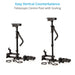 Telescopic center post with laser engraved guide scale markings offer quick & precise adjustments and helps in vertical balancing.