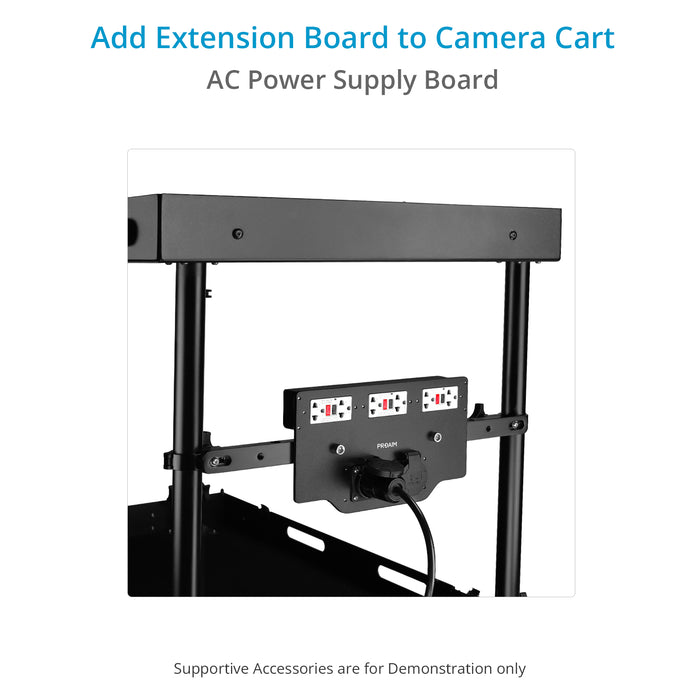 The power supply board is securely attached to your camera cart via an accessory crossbar using the Allen bolts. This ensures operation stability and reliability, preventing accidental disconnections or movement.
