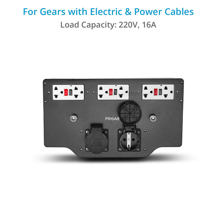 The Proaim 6 outlet AC power supply board (euro socket) for camera production carts is a high-performance accessory designed for European and Indian users to power up various devices on your camera production cart. It acts as an intermediate power extension between devices with short electric cables and longer extension boards, avoiding being stranded in one position due to short cables.
