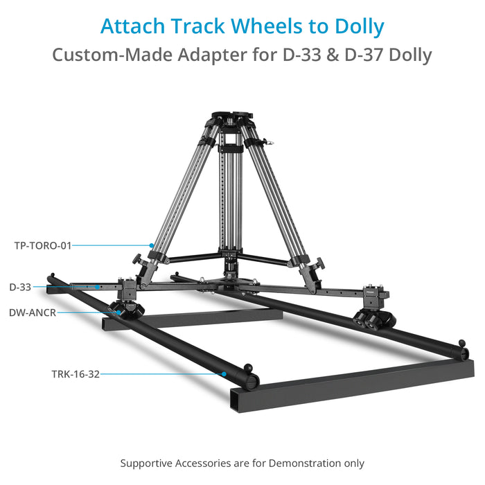 Upgrade your filmmaking setup with our custom-made adapter that attaches track wheels to the D-33 & D-37 Film Dolly, thus paving the way for a smoother, professional shooting experience.