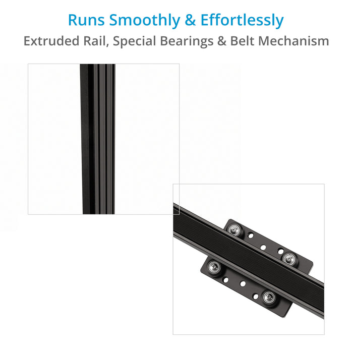 Proaim Alpine Slider offers effortless camera movement via sealed ball-bearing wheels that run smoothly on a sturdy nylon track.