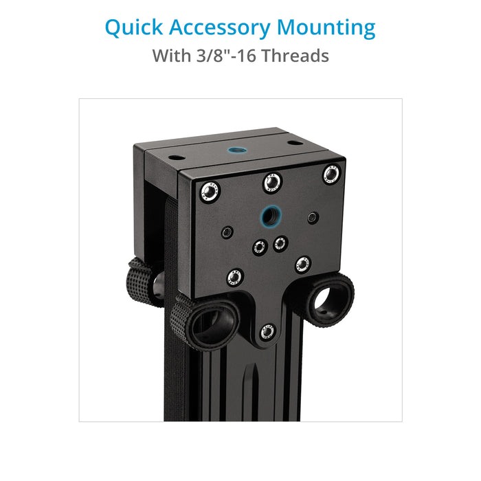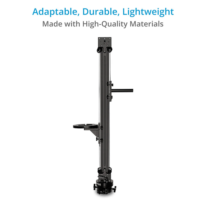 Proaim Alpine Tower Slider is a counterbalanced elevation tower that gives operators 26.7” of smooth vertical movement, as well as a complete 360° of rotation.
