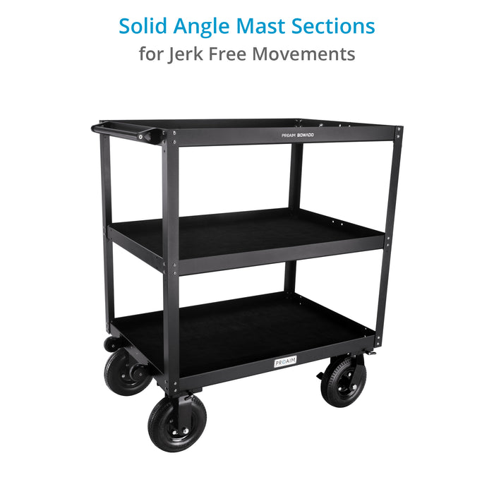 Proaim Bowado is a 3-Tier equipment cart that handles a wide variety of equipment. It is made of high-grade Aluminum and easily takes 440lb / 200kg payload.