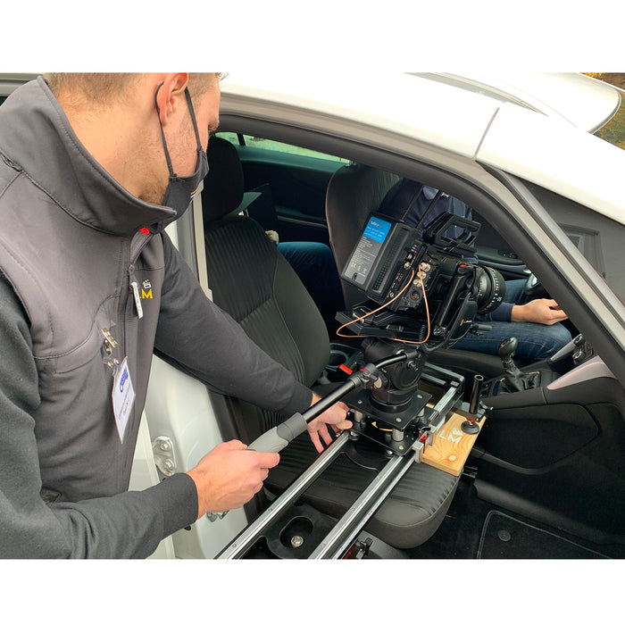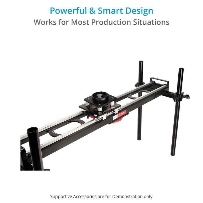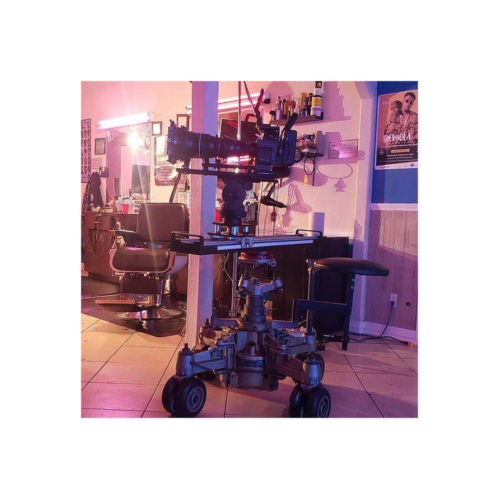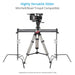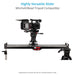 This slider can be mounted on the dolly and stay all day. The low profile of the slider allows you to take low shots to create a more dramatic effect when needed.