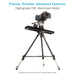 The Gravity Tripod Stand works extremely efficiently with equipment such as Camera Slider, Jib, Dolly and Geared Heads.