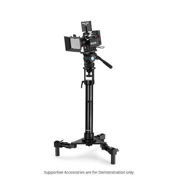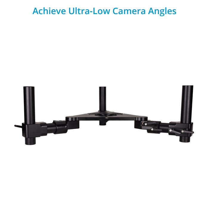 You can achieve extremely low shots thanks to the sliding legs, and go as high as you like by using Speed Rails to rig the setup.