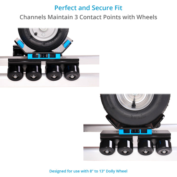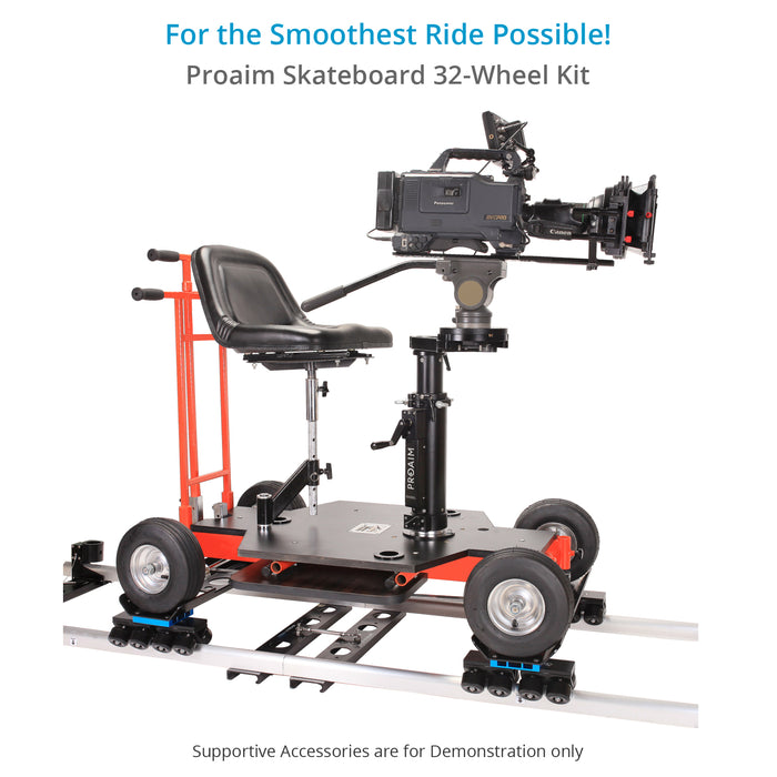 The main platform of Proaim Skateboard has been designed and angled to work with any Dolly-wheel diameter between 8" to 13" while maintaining a 3-point contact for complete safety and stability.
