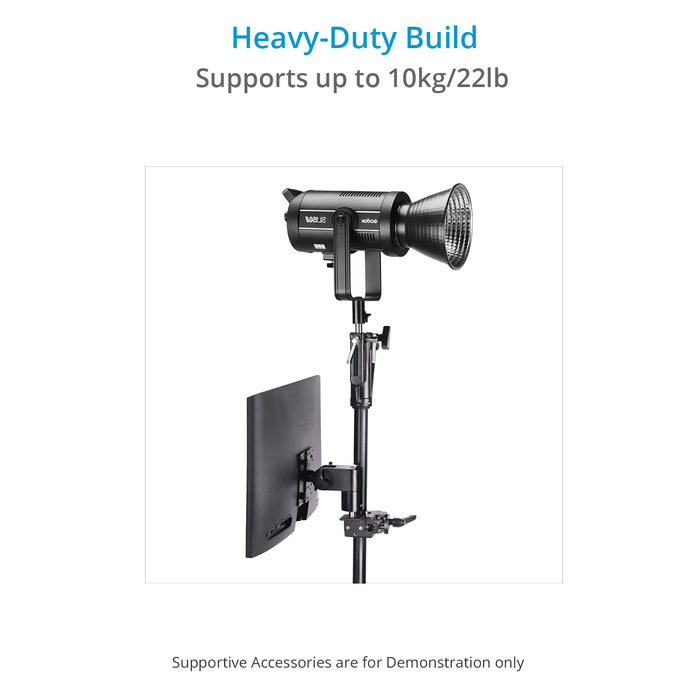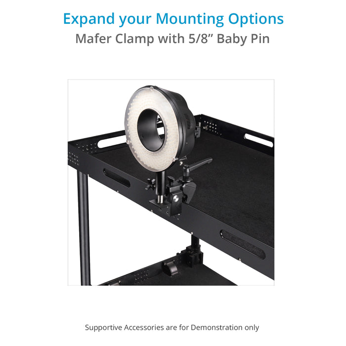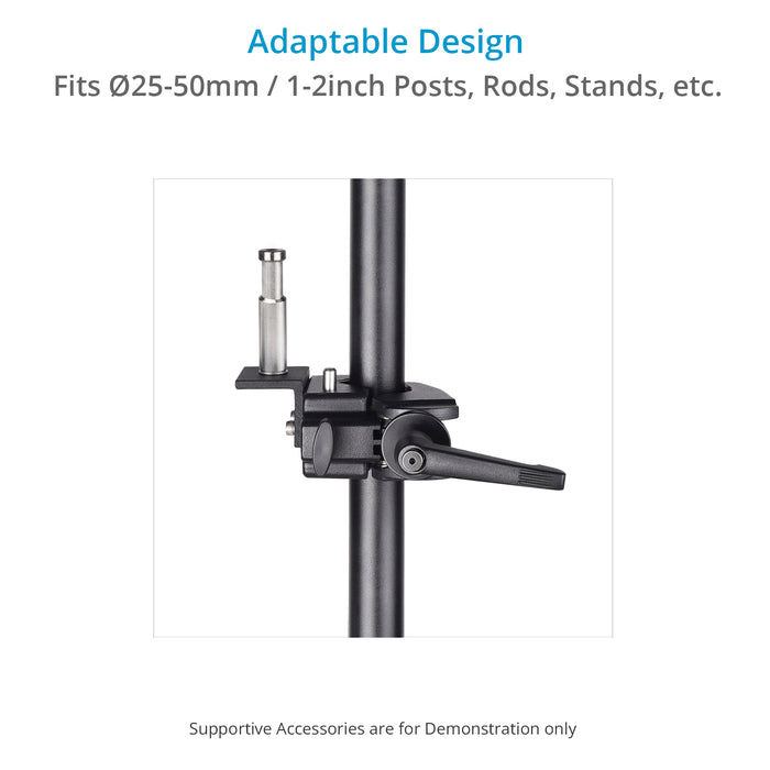 Proaim Super Clamp Pro adds a 5/8" Baby Pin to any 25-50mm / 1-2inch diameter post, including rods, C-Stands, and rolling stands. Ideal for mounting monitors, hanging cameras, or securing accessories with a 5/8 baby pin receiver, it also works perfectly with our Bowado & Atlas Cart Series.
