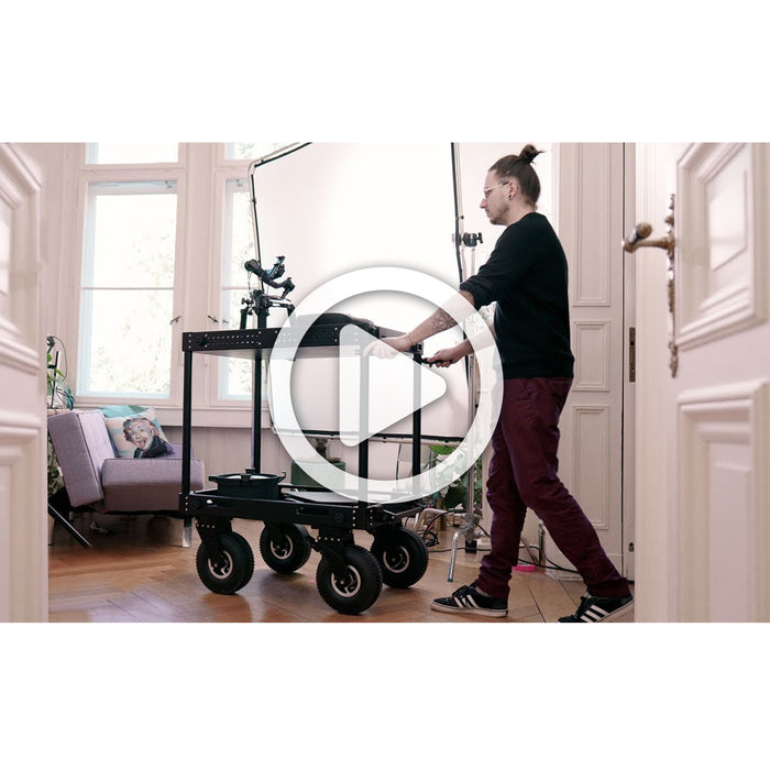 In just 2-3 minutes, the Victor Pro transforms from a compact 7” suitcase to a full-featured camera cart - No tools needed! Its collapsible design saves precious on-set time and provides travel-friendly convenience wherever you go.