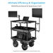 With over 50 accessory options, this versatile cart transforms into a DIT, Sound, Lighting Cart, or Equipment Dolly. The built-in cheese plate on the top shelf brings limitless possibilities, so you can customize it to fit any production need.