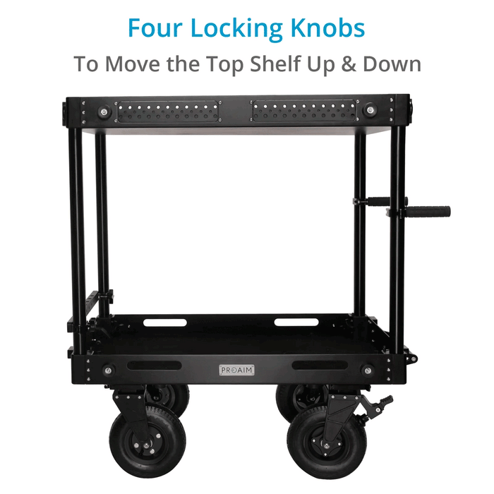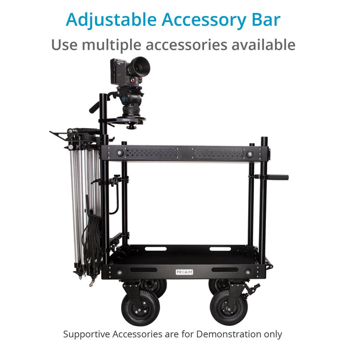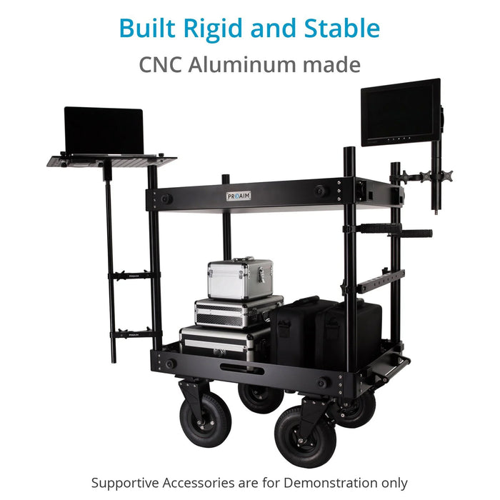 The Proaim VictorV1.1 Cart is much more than a standard camera cart. Choose from over 50 different accessories, and you can transform it into a DIT Cart, a Sound Cart, a Lighting Cart or even an Equipment Dolly.