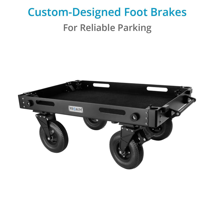 Yes, the Proaim Victor production cart is specially designed with foot brakes to make it completely steady, stable, and secure for reliable parking.